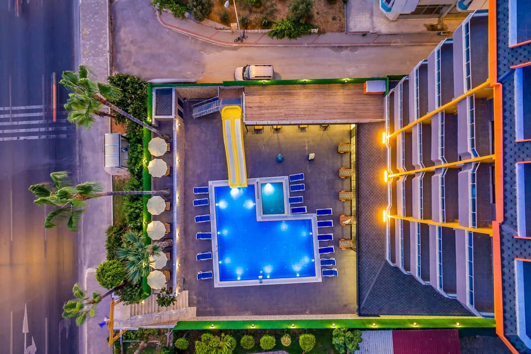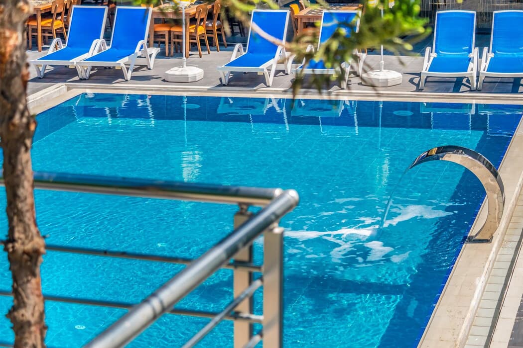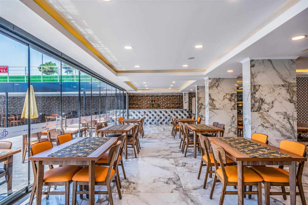 Tesiste 40 standart oda deniz manzaralı 10 standart oda kara manzaralı oda mevcuttur. Tesis 5 katlı olup asansörlüdür. Sabah kahvaltısı öğle ve akşam yemek açık büfe olup, belirlendiği markalar dahilinde yerli dağıtım ve alkolsüz içecekler ( Rakı Hariç ) 10:00 ile 22:00 saatleri arasında ücretsizdir.