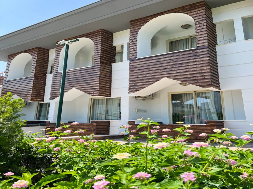 Otelin geniş yüzme havuzu ve doğayla iç içe bahçesi, misafirlere dinlenme ve keyifli vakit geçirme imkânı sunarken, özel plajı ise denizin ve güneşin tadını çıkarmak isteyenler için mükemmel bir fırsat sağlar.