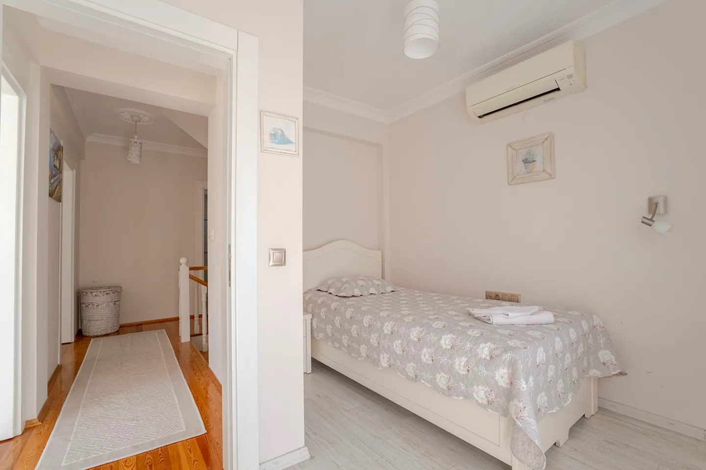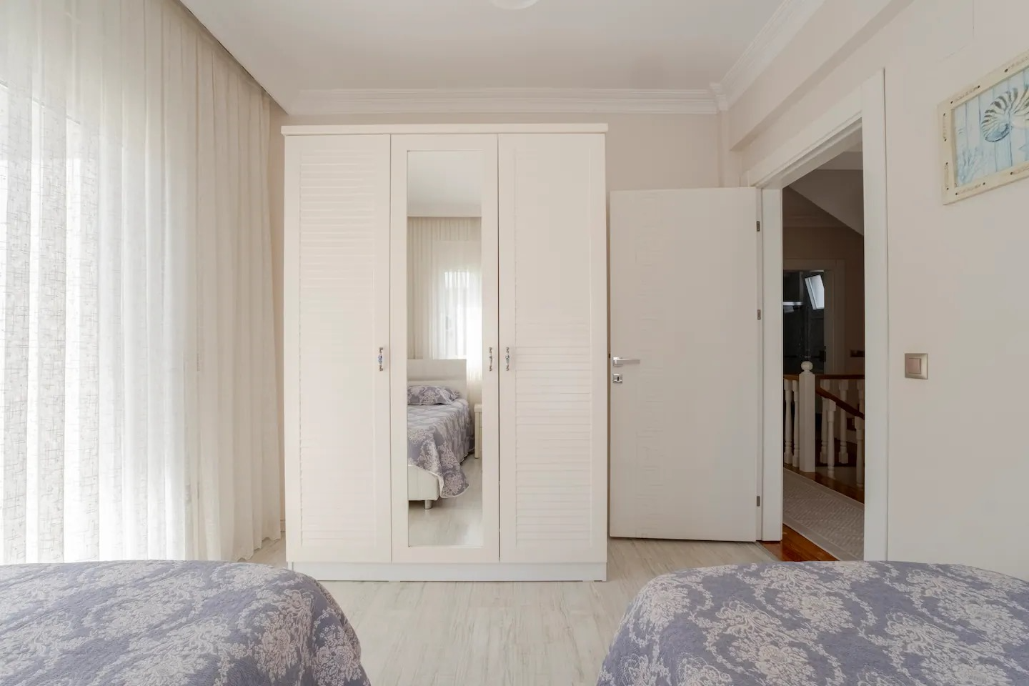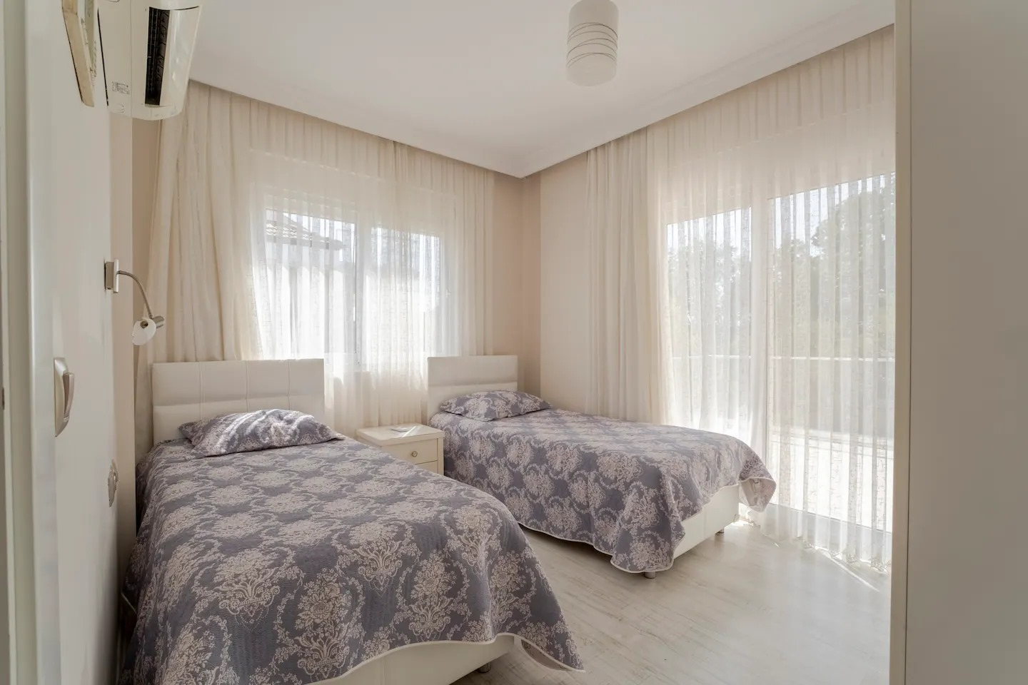 Villamızın içerisinde toplam dört yatak odası ve dört adet WC-Duş bulunmaktadır. Birinci yatak odası içerisinde iki adet tek kişilik yatak ve klima bulunmaktadır. İkinci yatak odası içerisinde çift kişilik yatak, ebeveyn odası ve klima bulunmaktadır. Üçüncü yatak odası içerisinde çift kişilik yatak, klima ve jakuzili banyo bulunmaktadır. Dördüncü yatak odası içerisinde bir adet tek kişilik yatak yer almaktadır.